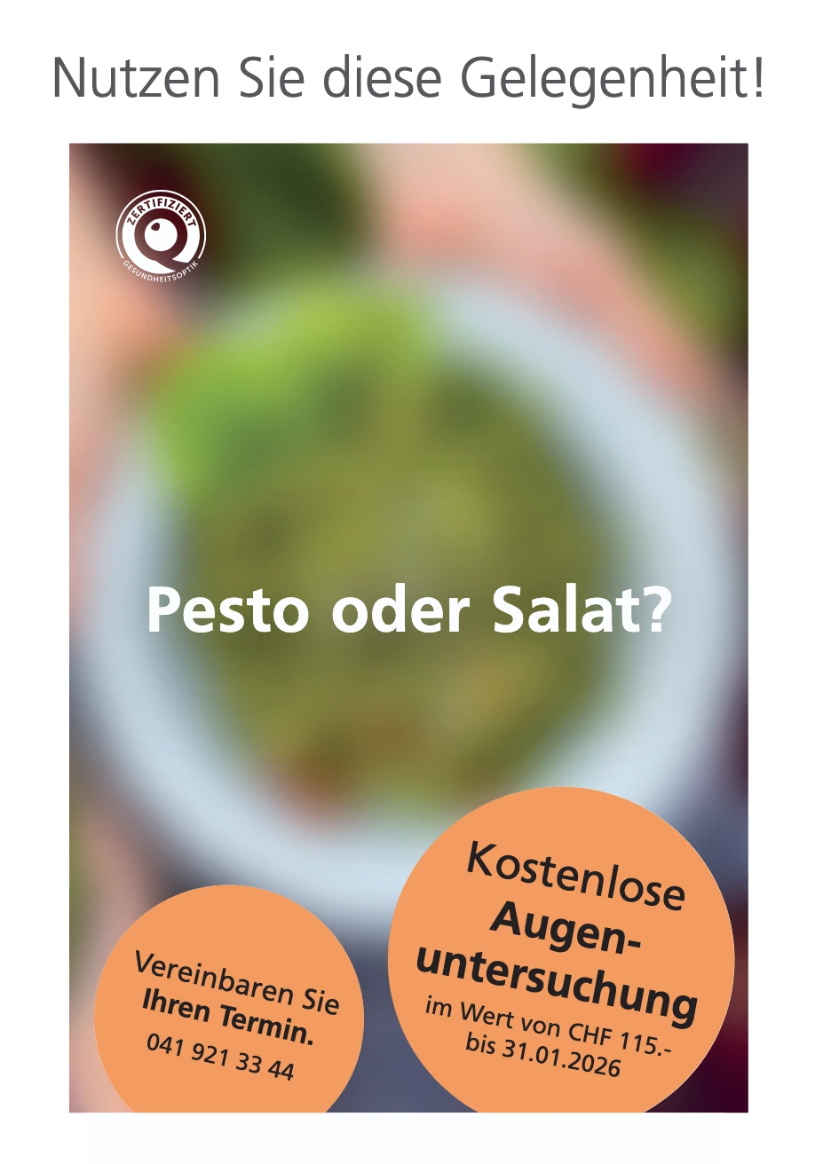 Mit viel Engagement und grosser Leidenschaft beraten wir Sie, denn das Wohl Ihrer Augen steht bei uns an oberster Stelle. Durch unser Fachwissen sind wir gerne Ihr Ansprechpartner, wenn es um stilvolle Brillen und höchsten Sehkomfort geht. Wir freuen uns auf Ihren Besuch!